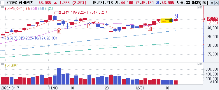 1.3 KODEX 레버리지 - 3일간 음봉 눌리다가 양봉에 익절.