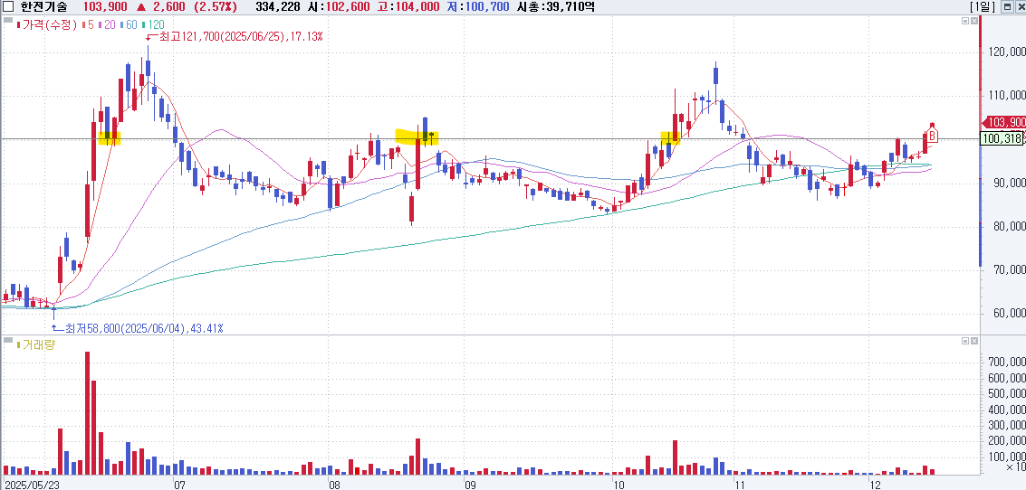 1.4 한전기술 - 핵잠수함 관련해서 뭐가 나올 것 같아서 사보긴 했는데.. 100,300원자리 뚫리면 손절할 예정. 거래량터진 양봉 뒤 반등나온 자리 + 거래량터진 양봉에 종가/시가 되는 자리라서 중요한 자리처럼 보임. 차트대응 예정.