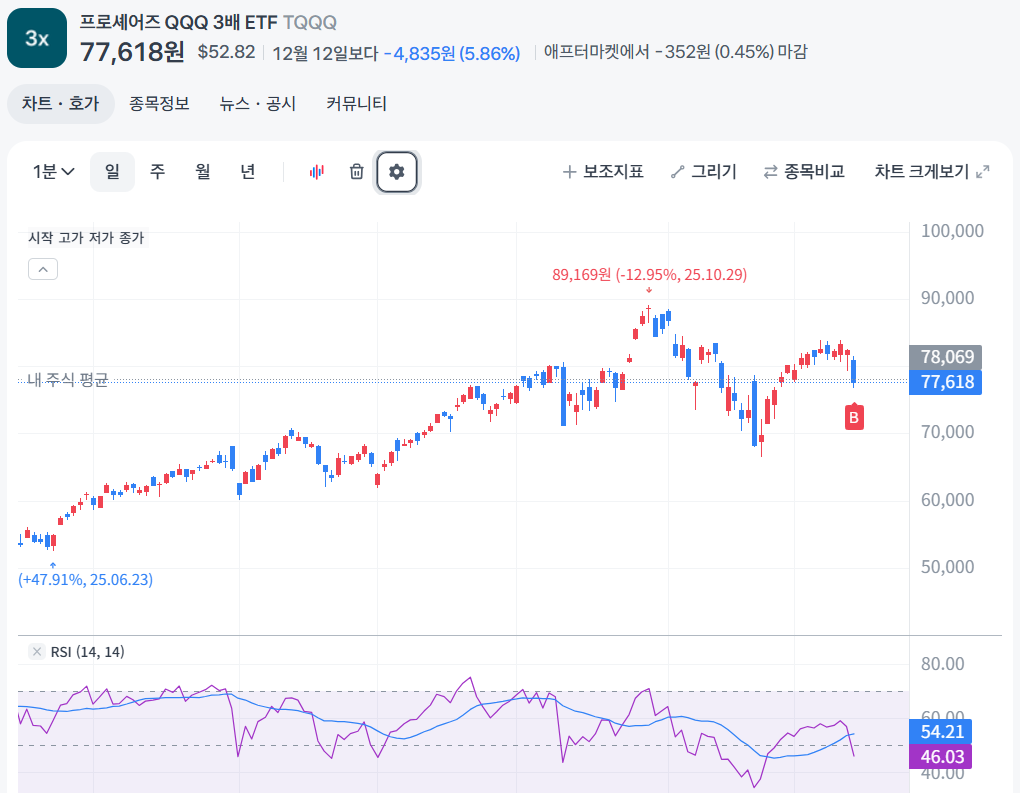 1.8 TQQQ - 분할매수 시작, 토스증권이 삼성증권보다 환전이 훨씬 쌈.